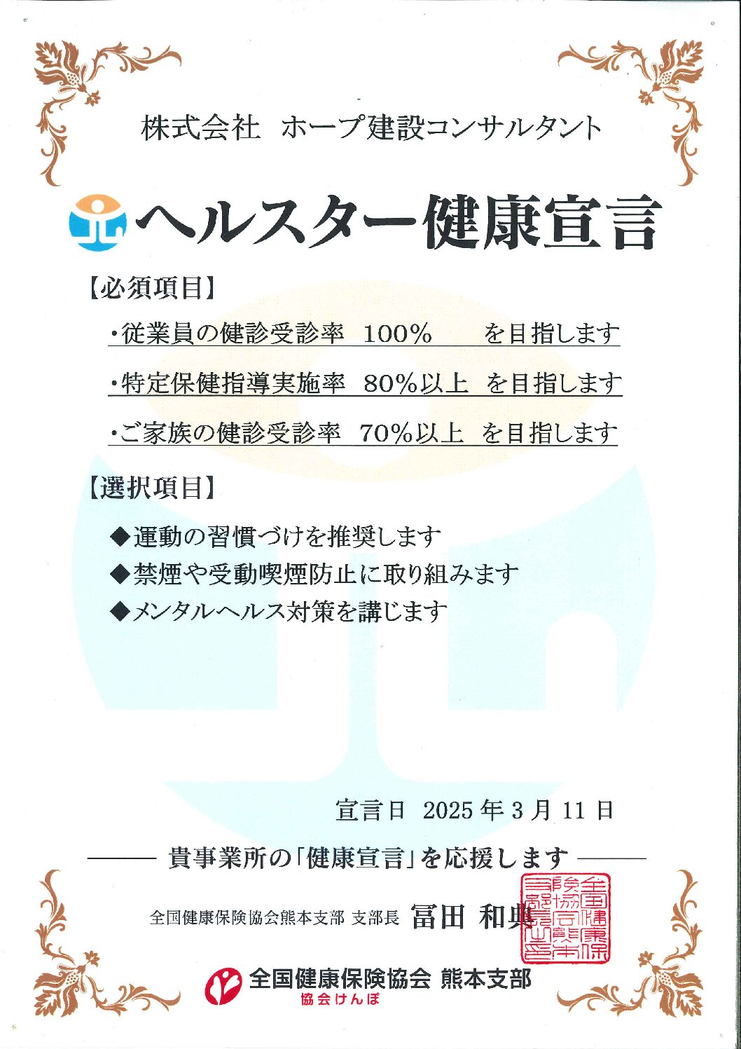 皆さんは「健康経営」という言葉をご存知でしょうか。最近では、働く人の健康づくりに積極的に取り組む企業が注目されています。 実は当社もこのたび、全国健...